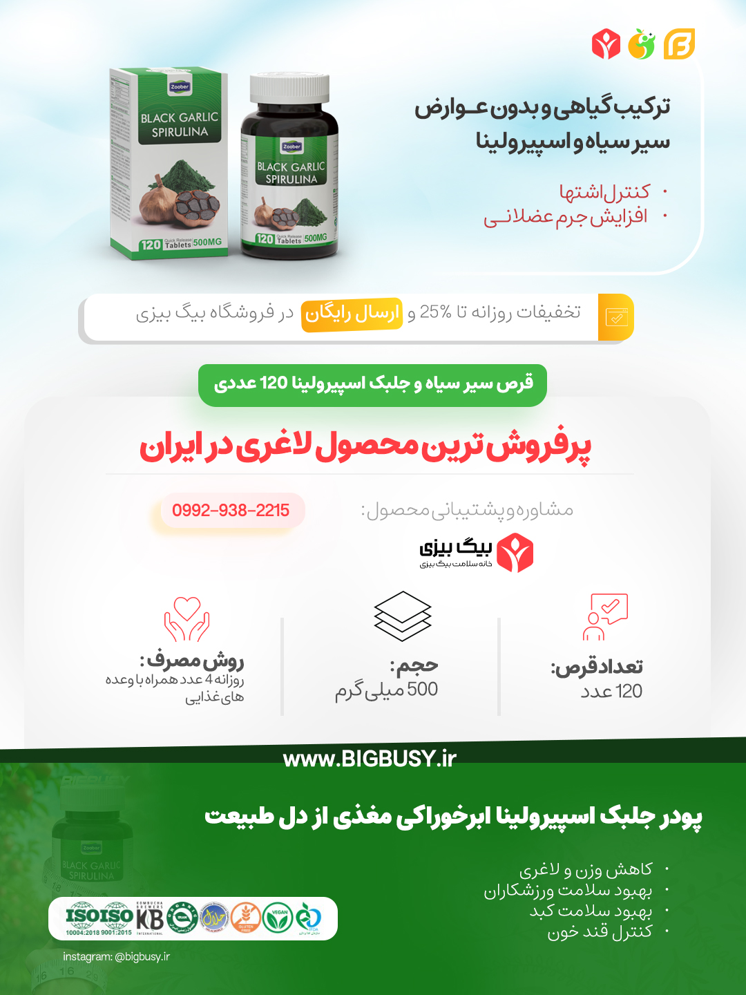 قرص سیر سیاه و اسپیرولینا زوبر از فروشگاه بیگ بیزی یکی از بهترین گزینههای موجود در بازار است، به دلایل زیر: