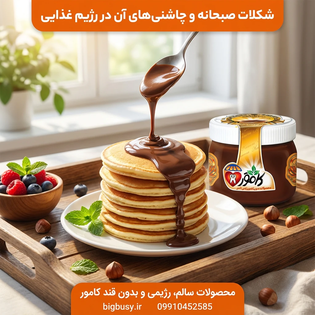شکلات صبحانه بدون قند کامور 190 گرم را امروز امتحان کنید و تفاوت یک صبحانه سالم را احساس کنید! 🍫✨