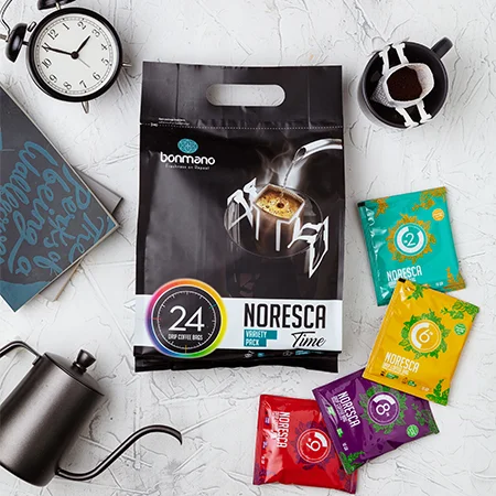 نورسکا تایم بنمانو، شامل 24 ساشه در هر بستهبندی است که براساس میزان کافئین برای ساعات مختلف روز طراحی شده است. نورسکا تایم، این امکان را میدهد در تمامی ساعات روز سریع و بدون دردسر قهوهدمی دلخواه خود را تهیه کنید. نورسکا تایم 24 عددی، 6 ساشه از هر 4 مدل نورسکا را در خود جای داده است و شامل نورسکا 9صبح با کافئین بالا، نورسکا 2ظهر با کافئین متوسط رو به کم، نورسکا 6 عصر با کافئین کمو نورسکا 8 شب با کافئین خیلی کم است.