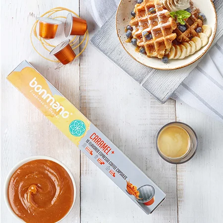کپسول اسپرسو کارامل (CARAMEL) یکی از کپسولهای قهوه اسپرسو بنمانو است که با طعمیاد لذتبخش و دلپذیر کارامل آغشته شده است. این قهوه با ترکیب جذابی از بهترین دانههای عربیکا و روبوستا با درجه رست مدیوم دارک فراهم شده است. محتوای قهوه کپسولی کارامل، با حفظ تعادل بین میزان تلخی، اسیدیته و کافئین متوسط، به نتهای کاراملی اجازه میدهد تا در کام شما بدرخشند.